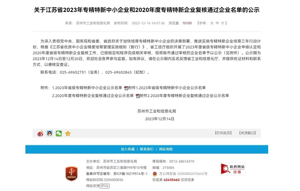 恭喜蘇州博睿通過(guò)江蘇省專(zhuān)精特新企業(yè)認(rèn)定